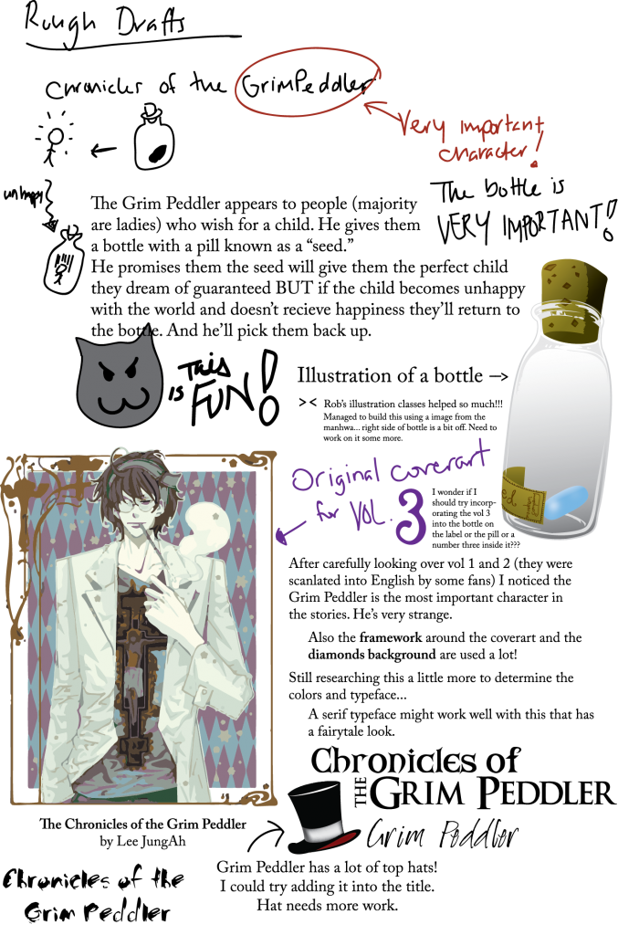 Originally I wanted to redesign a children's book (not sure which one but this was the general idea.) But after digging through my tiny book shelf of recently bought books that weren't packed away in storage I decided to redesign a manga book!